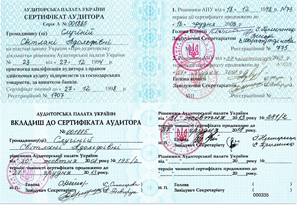 Согласно решению Аудиторской палаты Украины № 23 от 27 декабря 1994 г. присвоена квалификация аудитора с правом проведения аудита предприятий и хозяйственных субъектов, за исключением банков.