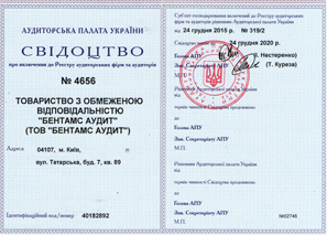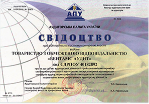 ООО «БЕНТАМС АУДИТ» включено в Реестр аудиторских фирм и аудиторов решением Аудиторской палаты Украины от 24.12.2015 г. № 319/2.