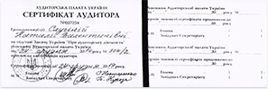 Согласно решению Аудиторской палаты Украины № 23 от 27 декабря 1994 г. присвоена квалификация аудитора с правом проведения аудита предприятий и хозяйственных субъектов, за исключением банков.